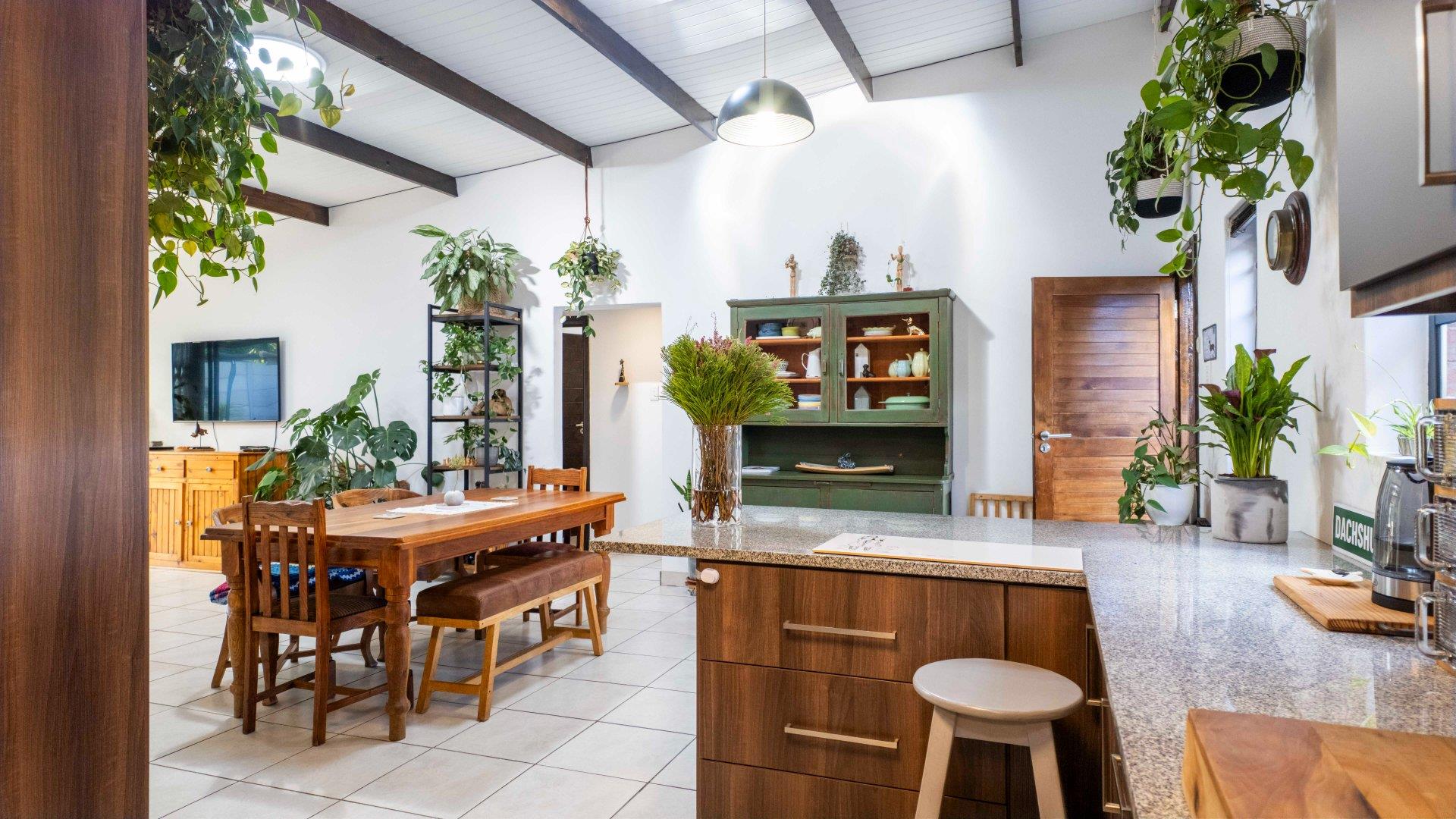 Inside, the open-plan kitchen, dining, an...